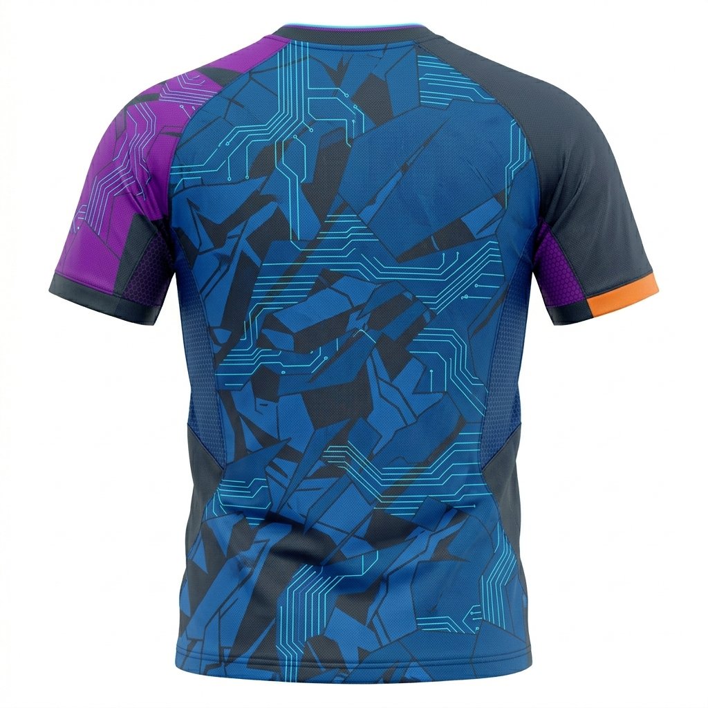 Push the boundaries of style and performance with the espoor™ Fracture-Tech Soccer Jersey. This elite-level match shirt features a sophisticated deep charcoal base with a dynamic, fragmented purple overlay and precision neon aqua circuit detailing. Designed for the modern footballer, this jersey provides a high-end, technical aesthetic without traditional brand logos.
